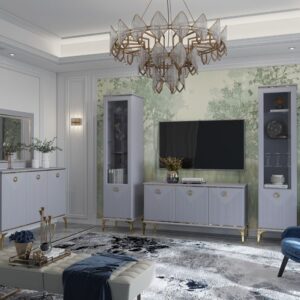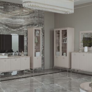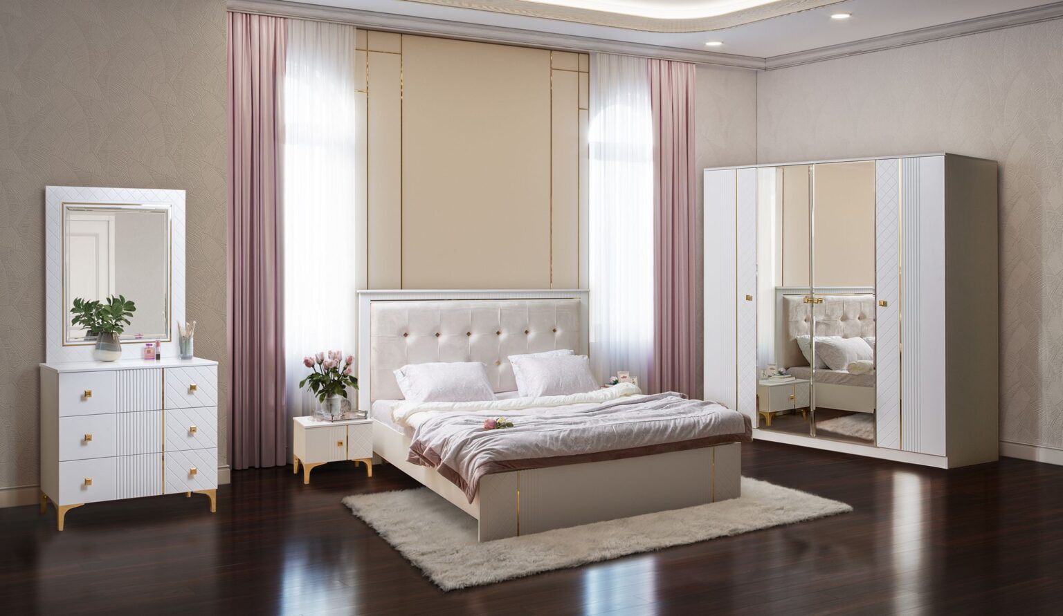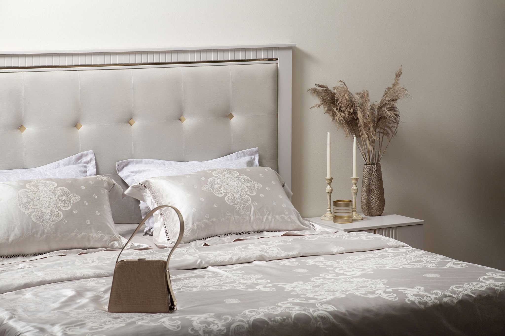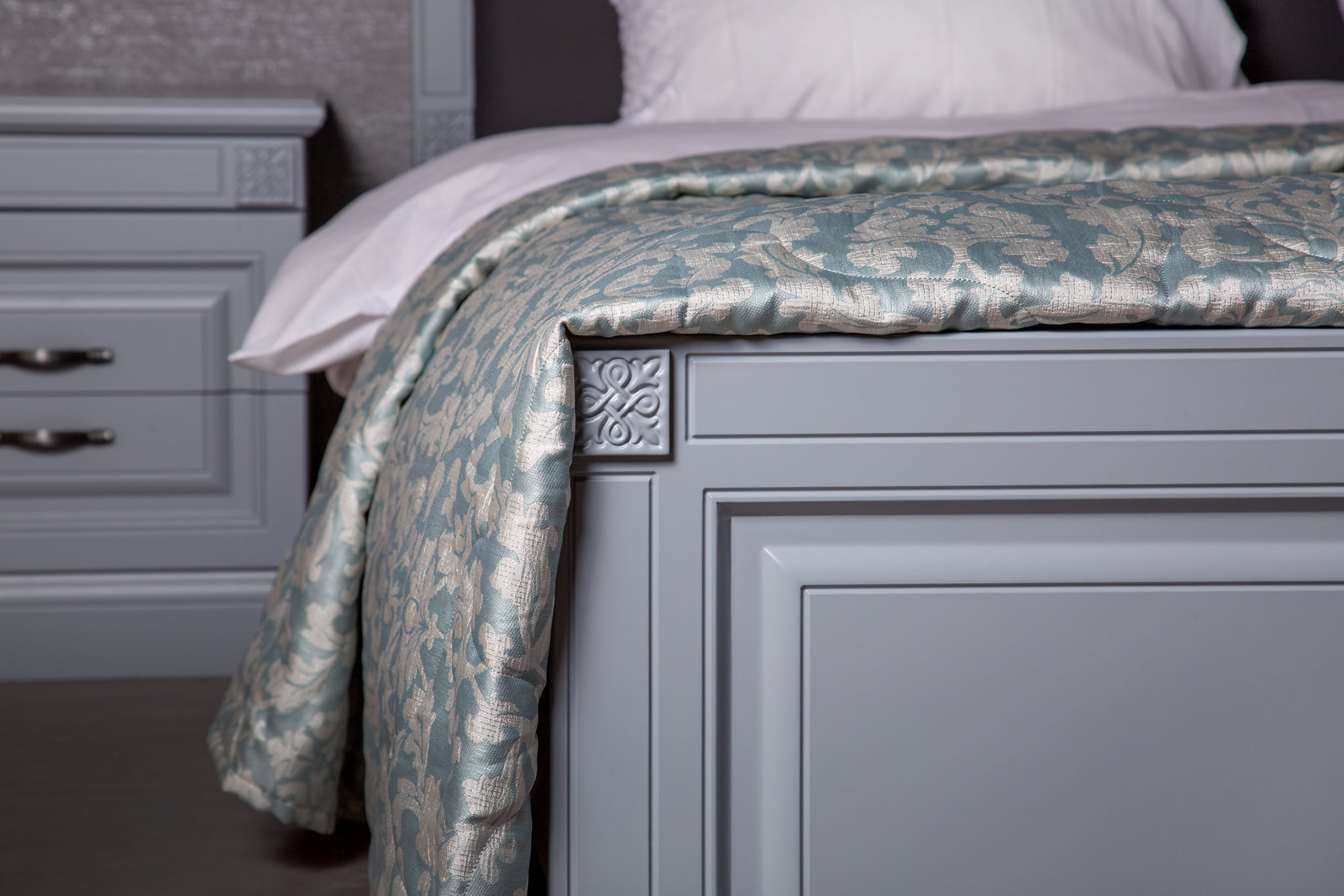Но красиво и богато не значит дорого. Для изготовления фасадов наша мебельная фабрика использует крашеный МДФ (Kronospan, Kastamonu), для изготовления корпусов – ЛДСП (русский ламинат). Это износостойкие, экологичные и доступные материалы, которые выглядят презентабельно и удешевляют общую стоимость комплекта без потери качества.