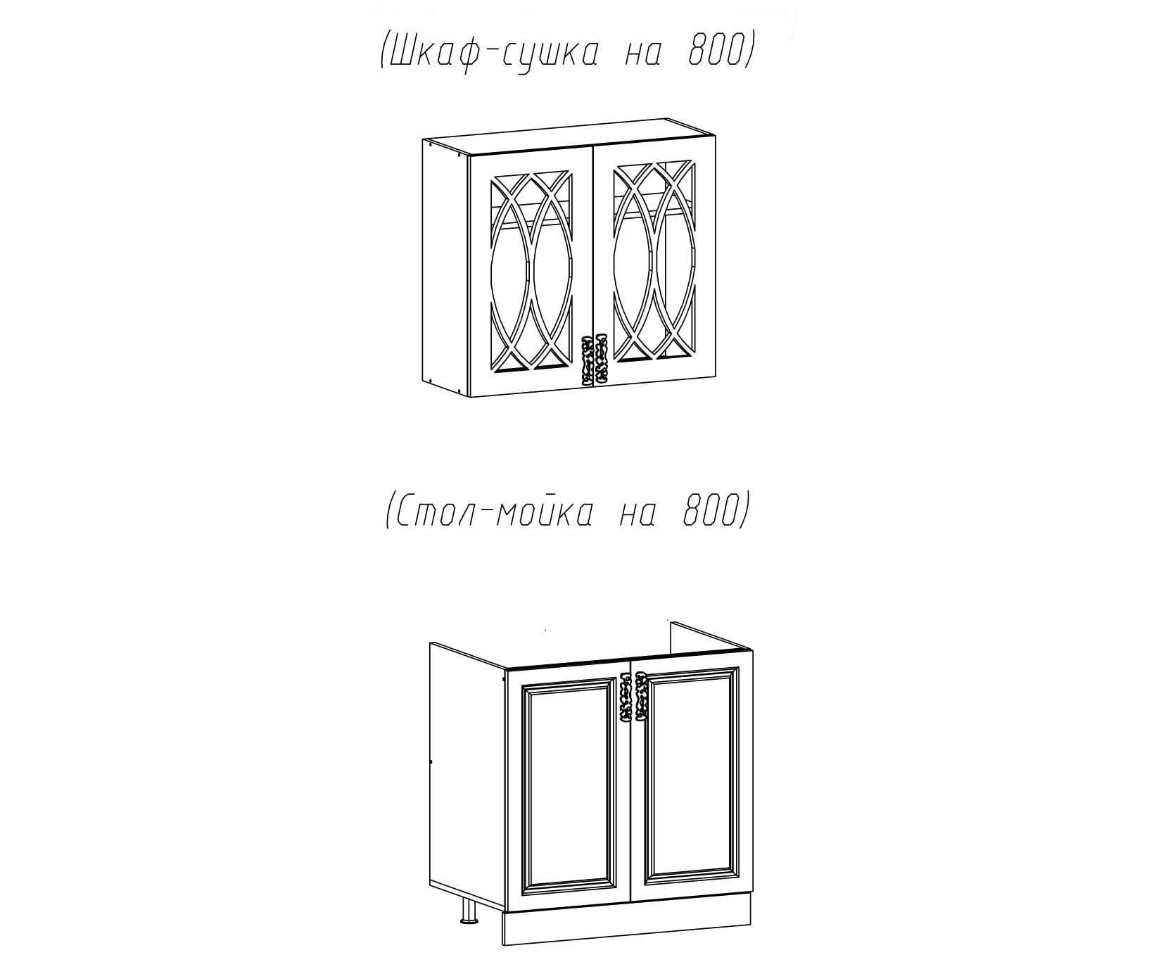 14. Шкаф-сушка (стекло) и Стол-мойка на 800