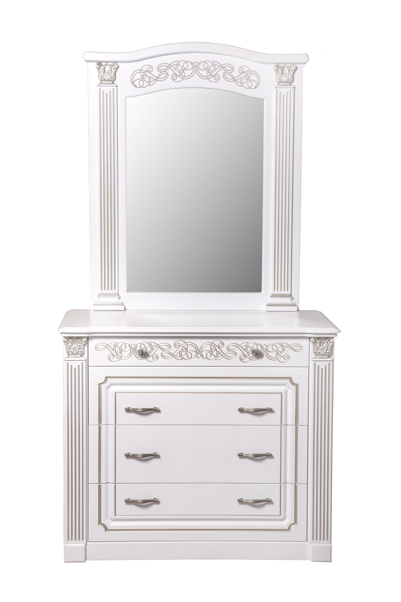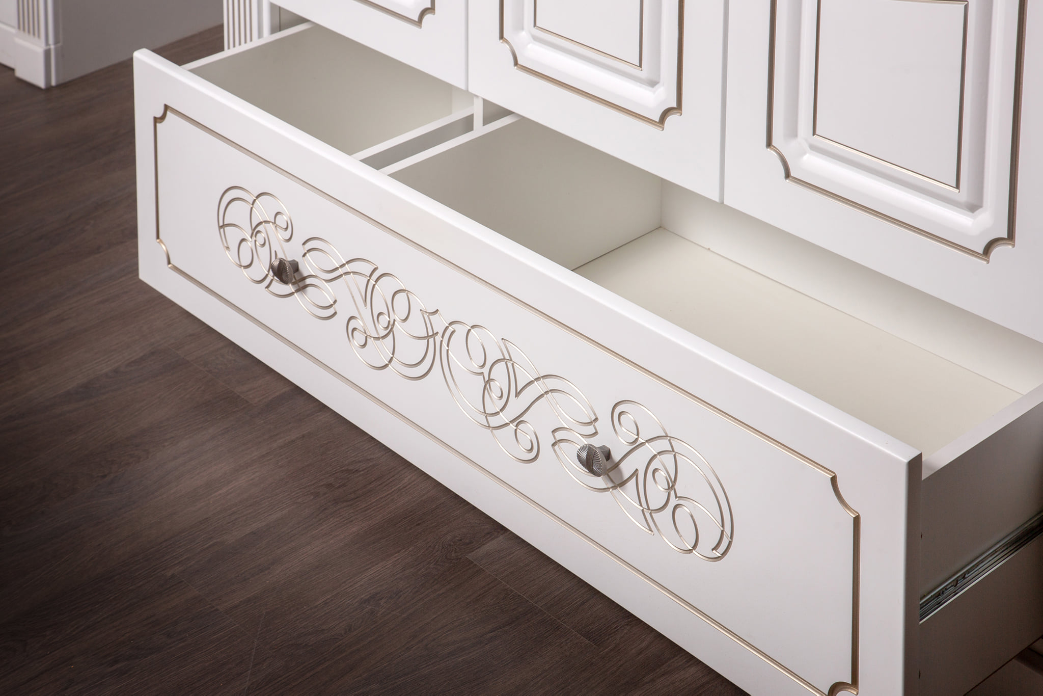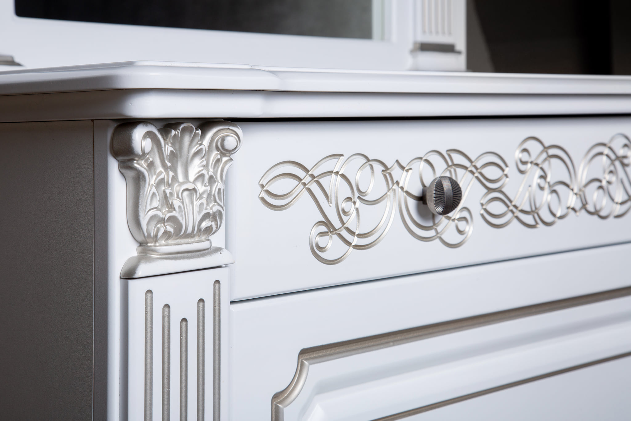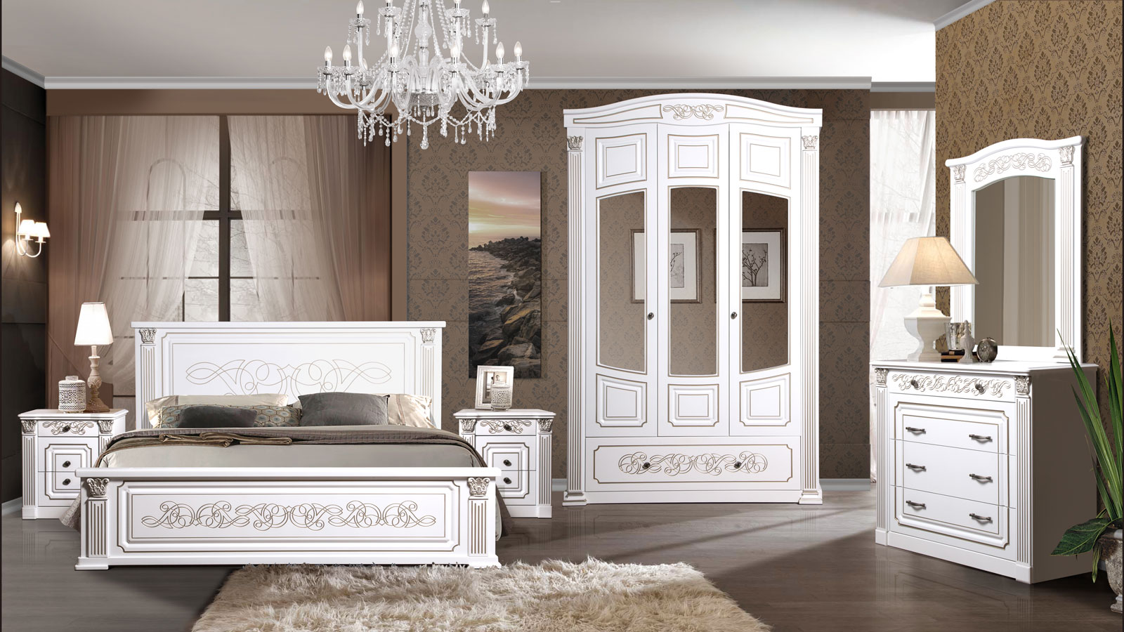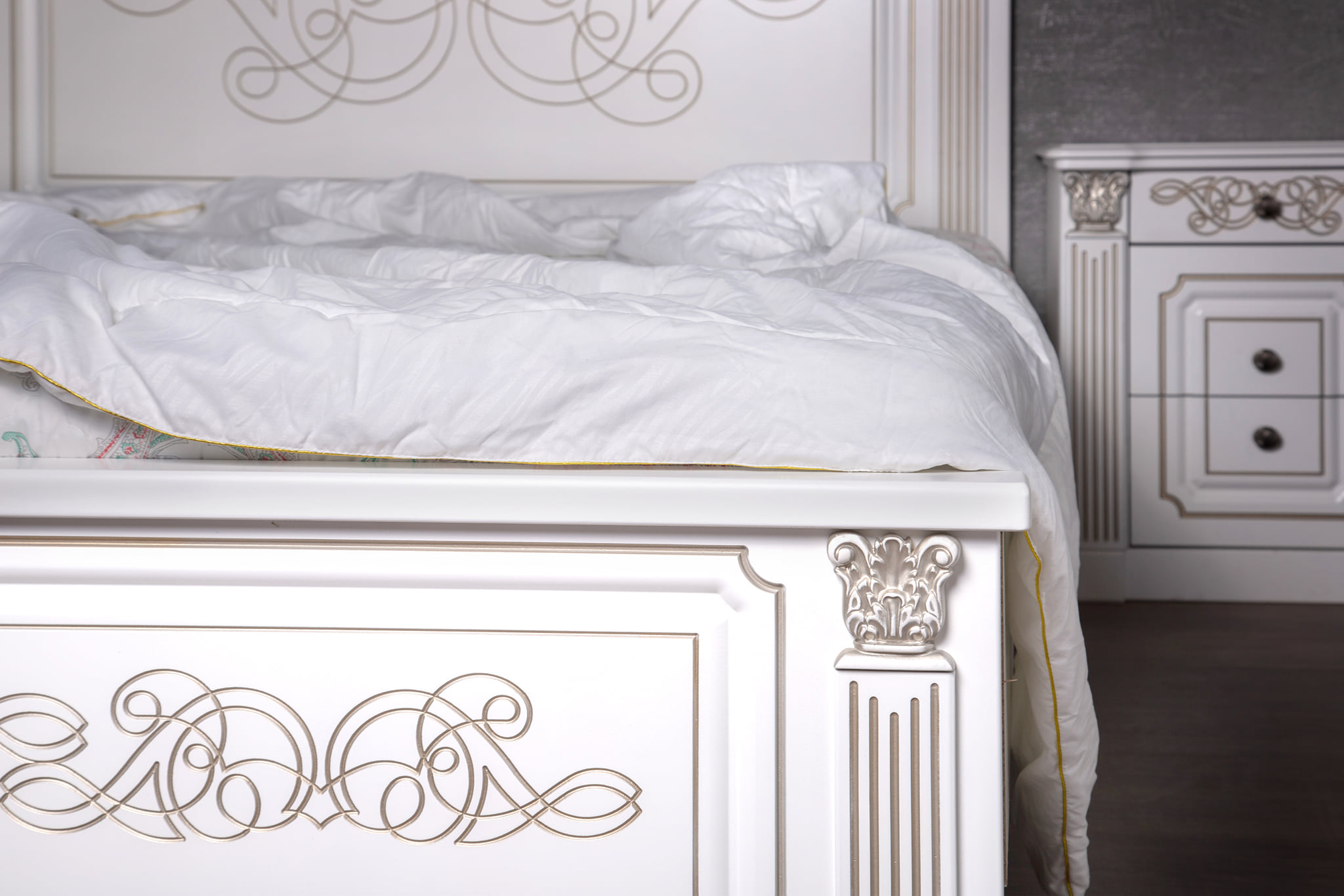 Спальный гарнитур «Валерия» отличает лаконичность и четкость линий – то, что присуще классическому стилю. Его поддерживают и светлые тона, и сдержанный декор, и симметрия орнамента.