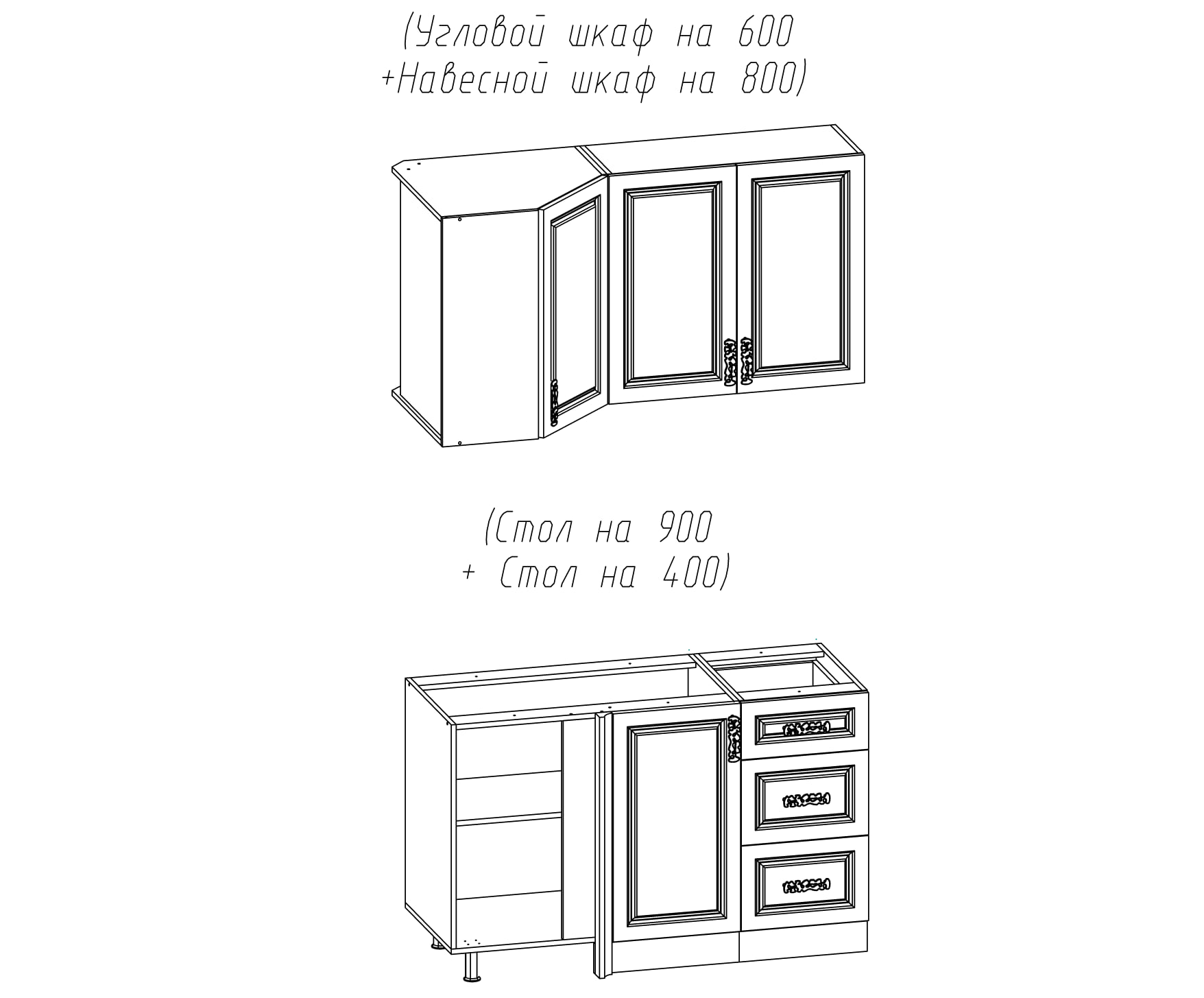 17. Угл. шкаф 600 + Навесн.шкаф 800 и Стол 900+стол 400